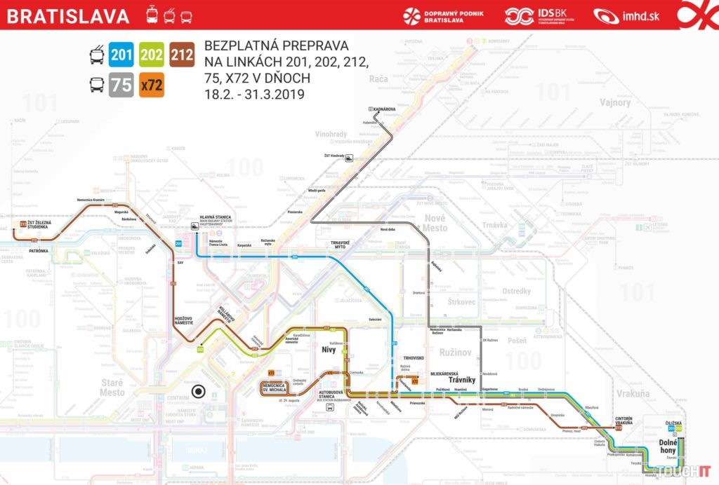 „Od pondelka 18. februára až do konca marca budú môcť všetci cestujúci na linkách 201, 202, 212, 75 a X72 jazdiť zadarmo. Okrem toho BID ponúka v tomto čase aj 50% zľavu z týždenného cestovného lístka, ktorý si zakúpite prostredníctvom aplikácie IDS BK.“