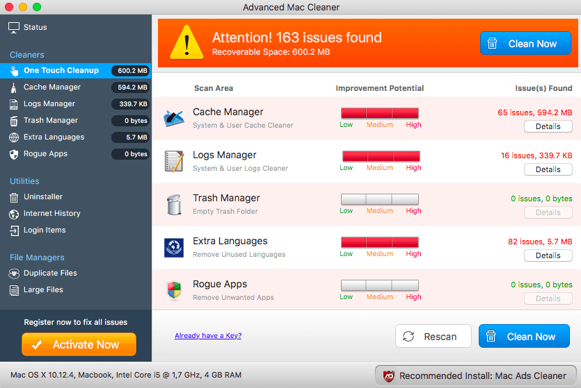 Falošný antivírus Advanced Mac Cleaner na systéme macOS