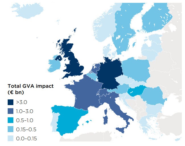 - vplyv na hrubý domáci produkt Európy, presnejšie povedané na hrubej pridanej hodnote (GVA)
