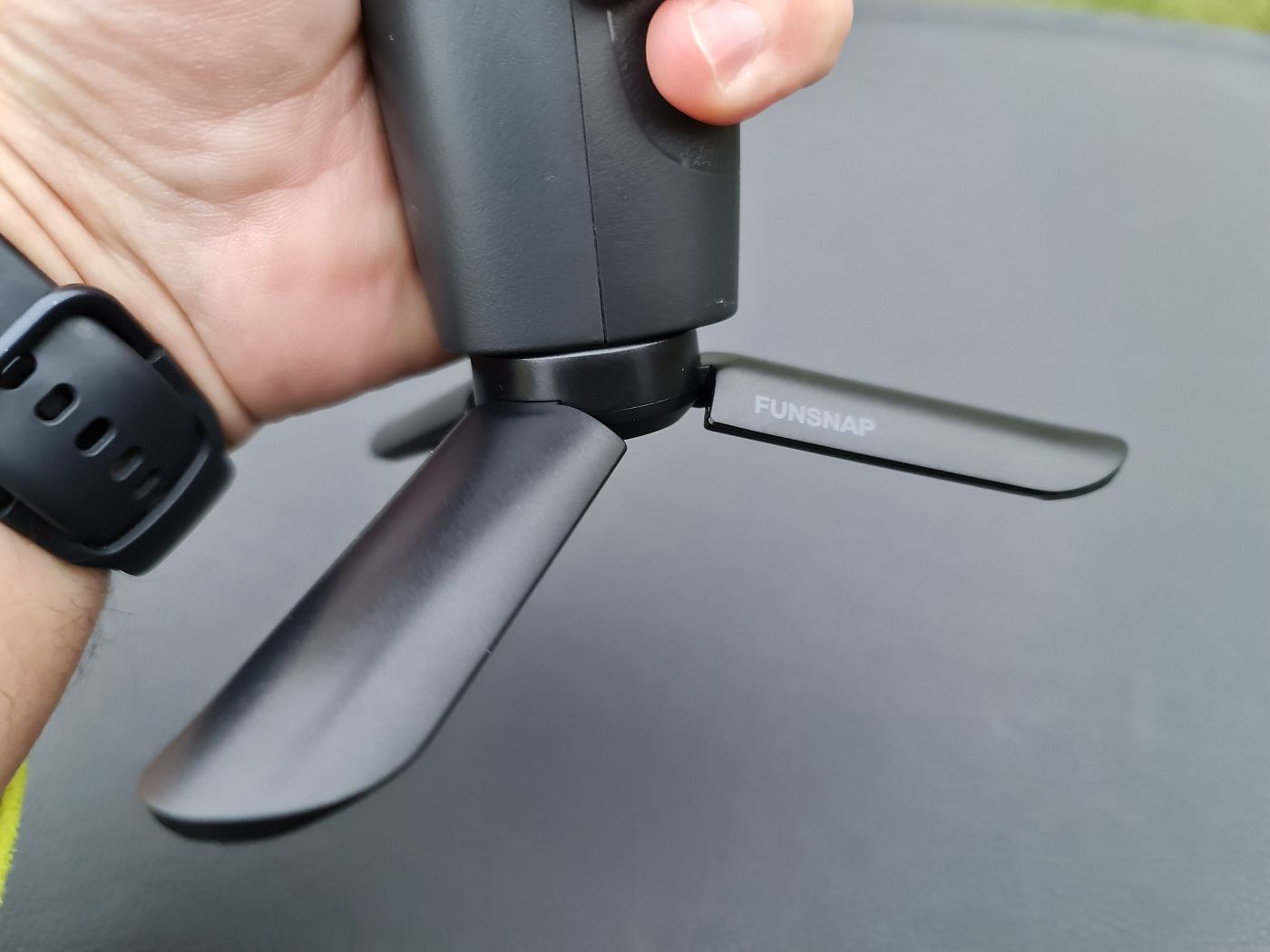 Ako som už spomenul, Funsnap Capture 2s je robustné zariadenie, podstatne väčšie ako DJI Osmo posledných generácií. Nemám ani jednu z nich na priame porovnanie, ale podľa údajov na internete má zložené DJI OM5 dĺžku necelého 17,5 centimetra. Funsnap meria takmer 30 centimetrov a je to poznať. Celkovo ide o masívne zariadenie s veľkými kĺbmi a elegancia DJI Osmo posledných generácií mu chýba. Dosť mi pripomína druhú generáciu DJI Osmo Mobile 2.