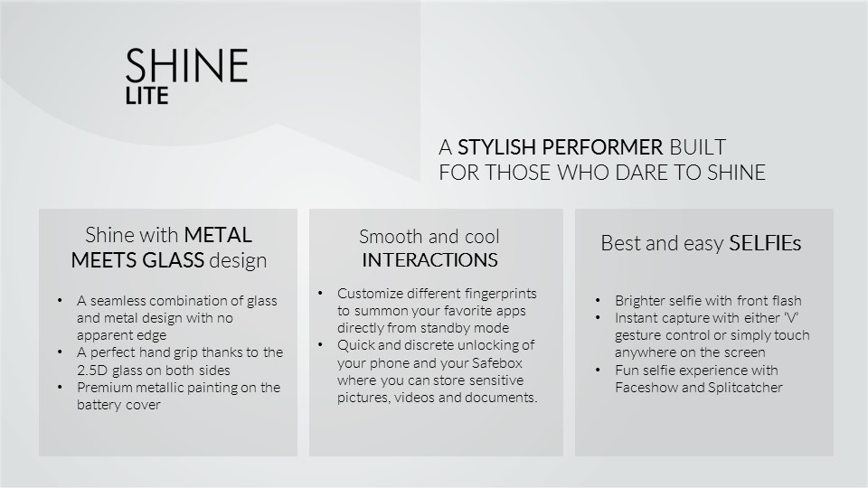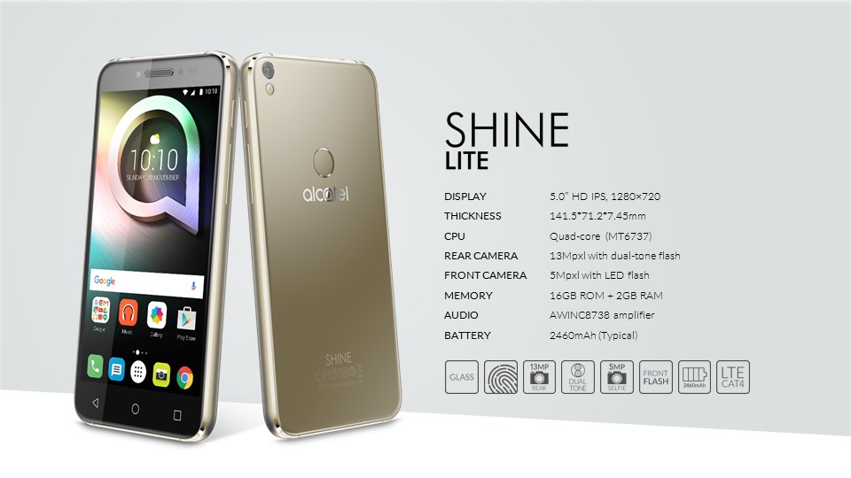 Úplnou novinkou je model Alcatel SHINE LITE, na test ktorého sa hlavne tešíme. Na prvý pohľad vyzerá výborne. Je vyhotovený z kovu a má integrovaný snímač odtlačku prsta.