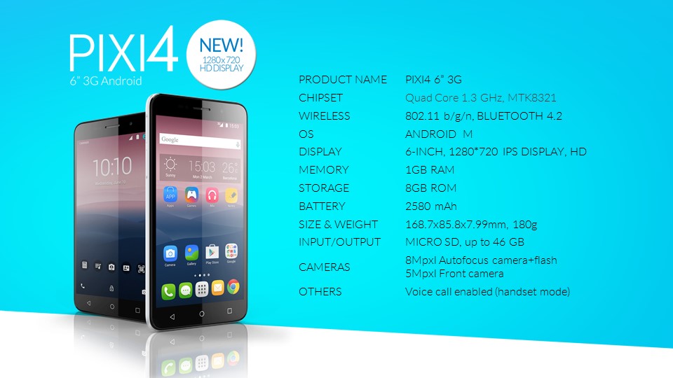 Prehliadku nových smartfónov Alcatel končíme modelom PIXI 4 so 6-palcovým HD displejom a cenou okolo 300 Eur!
