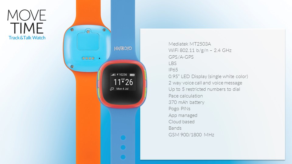 Alcatel tiež predstavil detské inteligentné hodinky, ktoré dokážu tiež monitorovať pohyb dieťaťa.