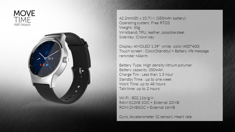 Medzi nové inteligentné hodiny od Alcatelu patria Move Time. Sú to hodinky, ktoré sa k telefónu – teda iOS aj Android – pripájajú cez Wi-Fi.