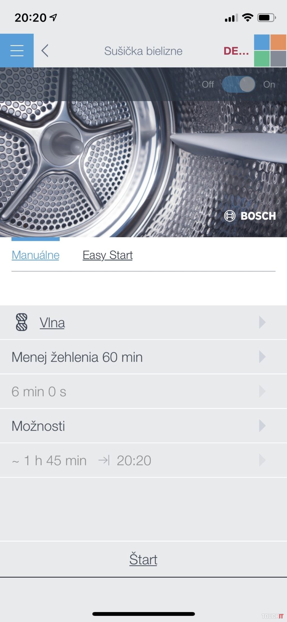 V prípade práčky je možné nastavovať rôzne programy, spustiť oneskorené pranie a začiatočníkov (v praní) poteší možnosť výberu typu oblečenia v aplikácii, na základe čoho vám bude odporučený najvhodnejší program. Taktiež je k dispozícii automatické dávkovanie pracieho prostriedku. Sušička, a taktiež umývačka riadu má podobné možnosti. Sušička napr. vie udržiavať oblečenie „teplé a v pohybe“, aby sa predišlo madžganiu a krčeniu. K umývačke ešte dodáme, že vždy pred jej spustením musíte povoliť vzdialené ovládanie, bez toho ju nespustíte. Príklad – deti ju doma naplnia, povolia prístup jedným tlačidlom a vy nastavíte, čo sa bude ďalej diať, resp. kedy začne proces umývania. Nie je to ešte úplne dokonalé, ale to sa časom doladí.