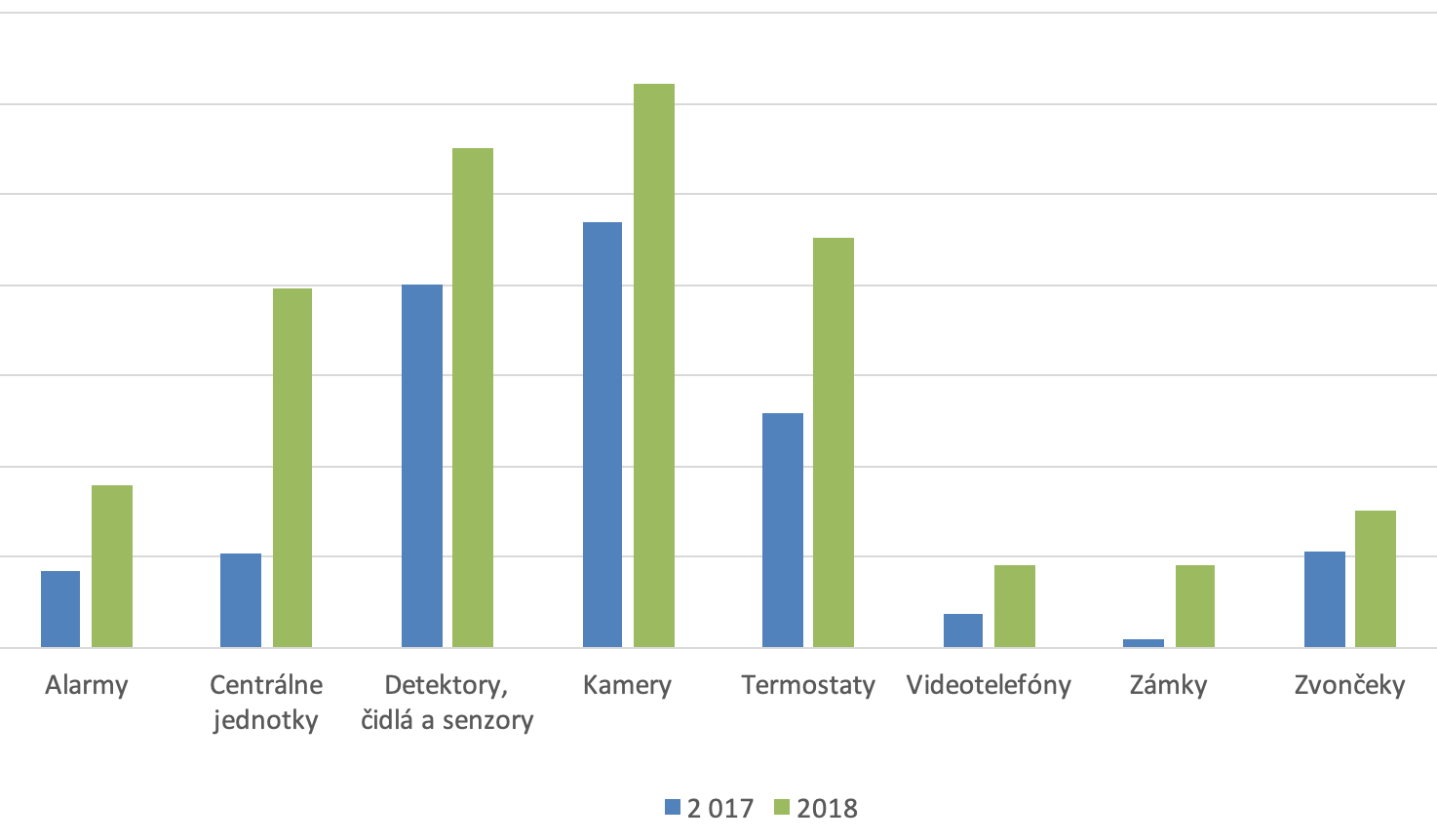 Viac ako zdvojnásobenie predajov vykazujú tento rok produkty z kategórie inteligentného zabezpečenia domácnosti – inteligentné alarmy (iGet, Fibaro), smart zámky, termostaty a veľký boom medzi slovenským zákazníkmi zažívajú tiež centrálnej jednotky s hlasovými asistentmi (napr. Apple Home Pod, Google Assistant, Amazon Alexa), ktorých sa od januára predali už stovky kusov. Stabilný záujem je aj o senzory a detektory (pohybu, dymu, plynu či CO alebo protipovodňové detektory), a tiež o smart meteostanice.“