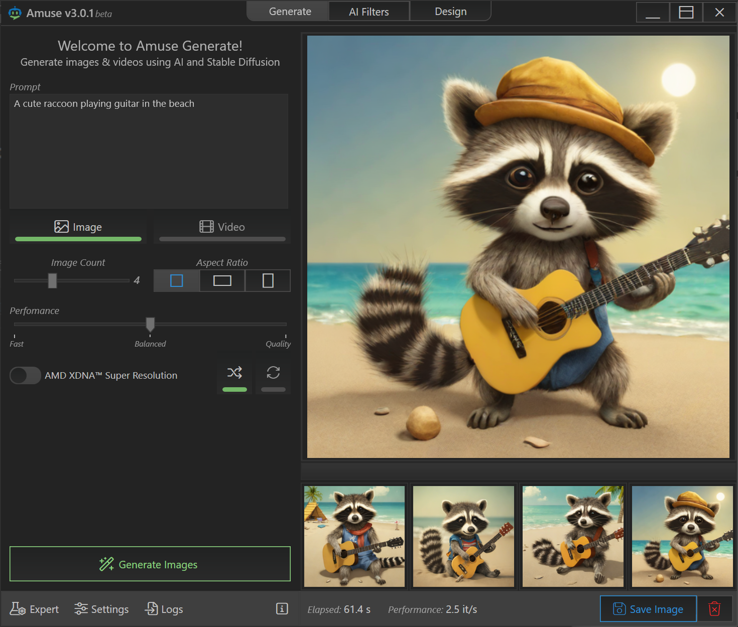 Výhodou je podpora procesorov AMD a podpora funkcií ako napríklad AMD XDNA Super Resolution. Základný režim generuje obrázky alebo video a na výber je štvorcový dizajn, ako aj rozloženie v pomere na šírku alebo na výšku.