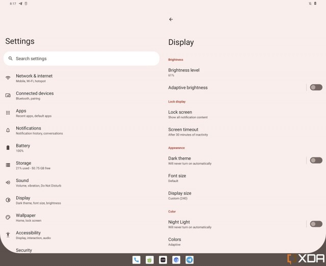 Zdá sa, že kľúčovým prvkom Androidu 12.1 je panel úloh, ktorý umožňuje zakotviť až päť aplikácií. Ten je natívne integrovaný s funkciami multitaskingu a rozdelenej obrazovky celého systému.