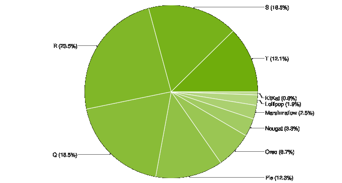 Na základe štatistík na zelenom koláčovom grafe vidno, že najnovší systém od posledného porovnania v januári tohto roku poskočil (zhodne s údajmi StatCountera) vo svojom podiely dvojnásobne. Celkovo sa tomuto systému darí lepšie ako Androidu 12, ktorý mal takmer rok po svojom vydaní iba 13,3 % podiel na trhu.
