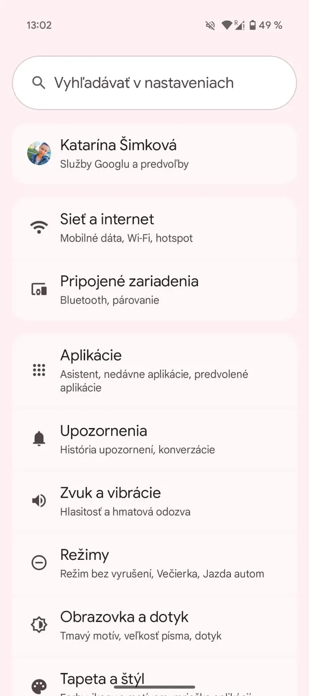 Material 3 Expressive | Moderný vzhľad systému: rozmazané pozadia, nové animácie, štýlové ikony, tlačidlá, detailné menu a fyzikálne animácie vo všetkých častiach systému. Viditeľné výrazné zjednodušenie usporiadania nastavení. |
