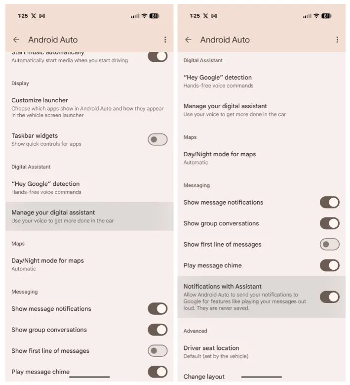 Hlavnou zmenou v Android Auto 14.8 Beta je nový názov „Digital Assistant“, ktorý v nastaveniach nahrádza označenie „Assistant“. Táto zmena je viditeľná hneď po nainštalovaní aktualizácie a nie je nijako skrytá.