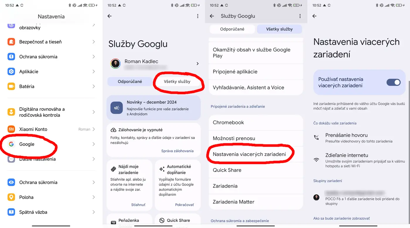 K funkcii na prepojenie viacerých Android zariadení sa môžete dostať tak, že sa vo vašom smartfóne alebo tablete objaví notifikácia, ktorá vás na jej dostupnosť upozorní. Alternatívne choďte do nastavení systému Android > Google > Všetky služby > Nastavenia viacerých zariadení.