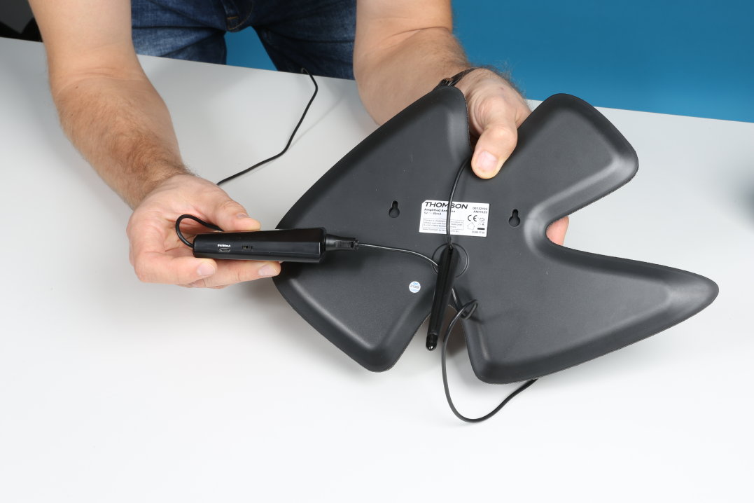 Zo zariadenia je vyvedený jeden anténny kábel, ktorý sa napája do zosilňovača signálu. Ten musí byť poháňaný napätím, vďaka priloženému USB káblu. USB kábel stačí pripojiť priamo do USB zásuvky v televízore, alebo set-top boxe. Anténa zachytáva digitálny televízny signál v (DVB-T/T2) a tiež rozhlasový signál (DAB/DAB+) a vďaka kombinácii zosilňovača a veľkosti antény dosahuje kvalitný zisk signálu, bez vplyvu mobilných signálov.