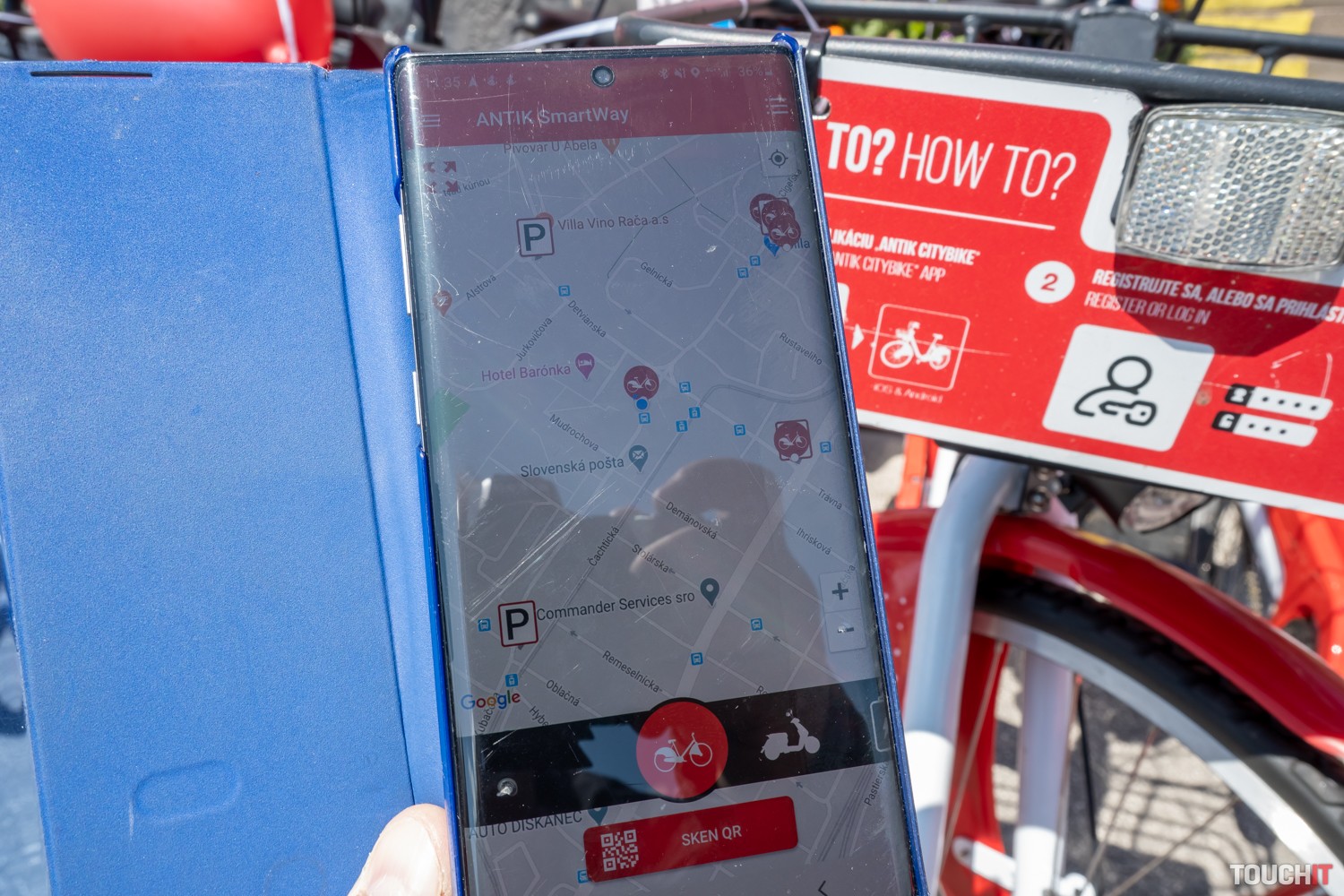 Práve tu sa nachádzajú stanovištia pre bicykle, ktoré sa dajú požičať cez aplikáciu. Aplikácia je rovnaká pre požičiavanie bicyklov, elektrických skútrov ale aj kolobežiek či už spomenutých powerbaniek a je rovnaká pre všetky podporované regióny. Zatiaľ v Bratislave zostávame pri mechanických bicykloch, ktoré sa pohybujú výlučne silou ľudských svalov.