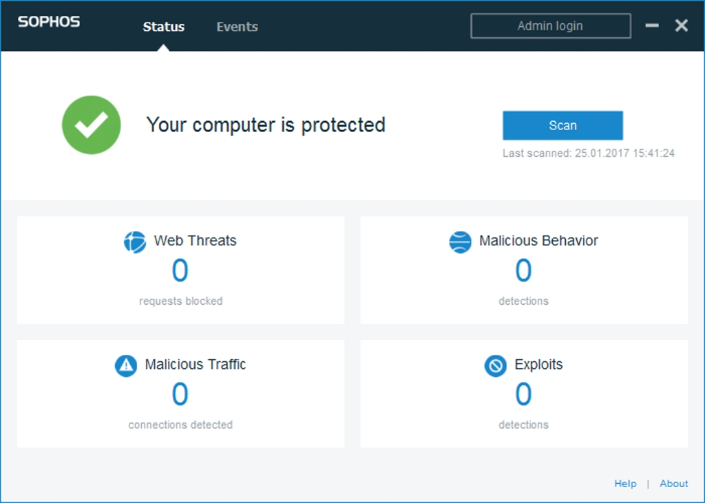 Sophos Intercept X ponúka na hlavnej nástenke prehľad hlásení a stavu ochrany nainštalovanej na počítačoch používateľov. Zistíte, ktoré sú aktívne alebo neaktívne či dlhodobo neaktívne. Na grafoch sa dajú sledovať logovacie súbory činností a udalostí. V čase je vidieť, kedy boli vykonané detekcie potenciálne škodlivých aplikácií alebo blokovanie prístupu k vybranému hardvéru.