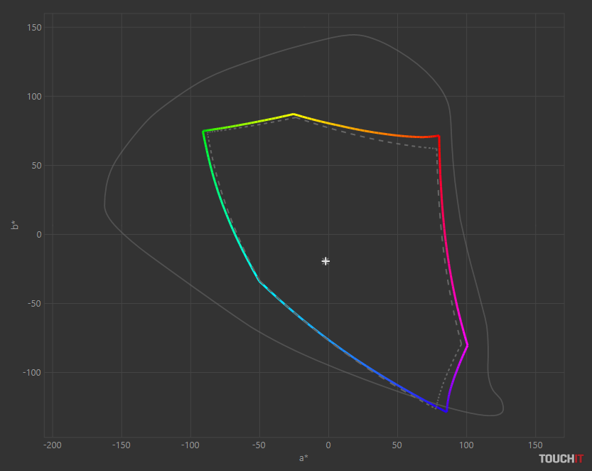 Pomocou kalibračnej sondy som pri prednastavenom kontraste nameral minimálny jas 79,83 nitov a maximálny jas až 391,44 nitov. Pokrytie farebných priestorov dosahuje 98,6 % pre sRGB, 69,9 % pre Adobe RGB a 73,5 % pre DCI-P3. Kalibračná sonda tiež namerala priemernú odchýlku deltaE na úrovni 0,09, resp. maximálnu na úrovni 1,36.