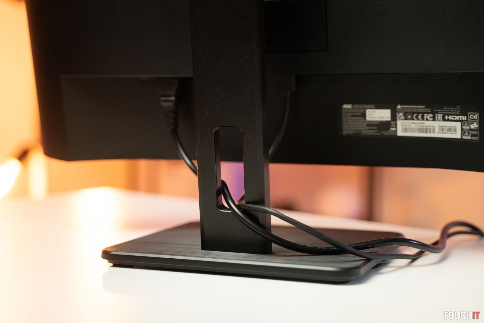 Musím vyzdvihnúť tuhosť plastového stojana a podstavca. Ak raz niečo nastavíte, tak to jednoducho drží na svojom mieste. Stojan má v spodnej časti aj výrez na káble. Ide o veľmi efektívne riešenie organizácie káblov, ktoré je nielen praktické, ale aj dizajnovo veľmi pekné. Nechýba dokonca ani možnosť zavesenia na stenu VESA 100×100.