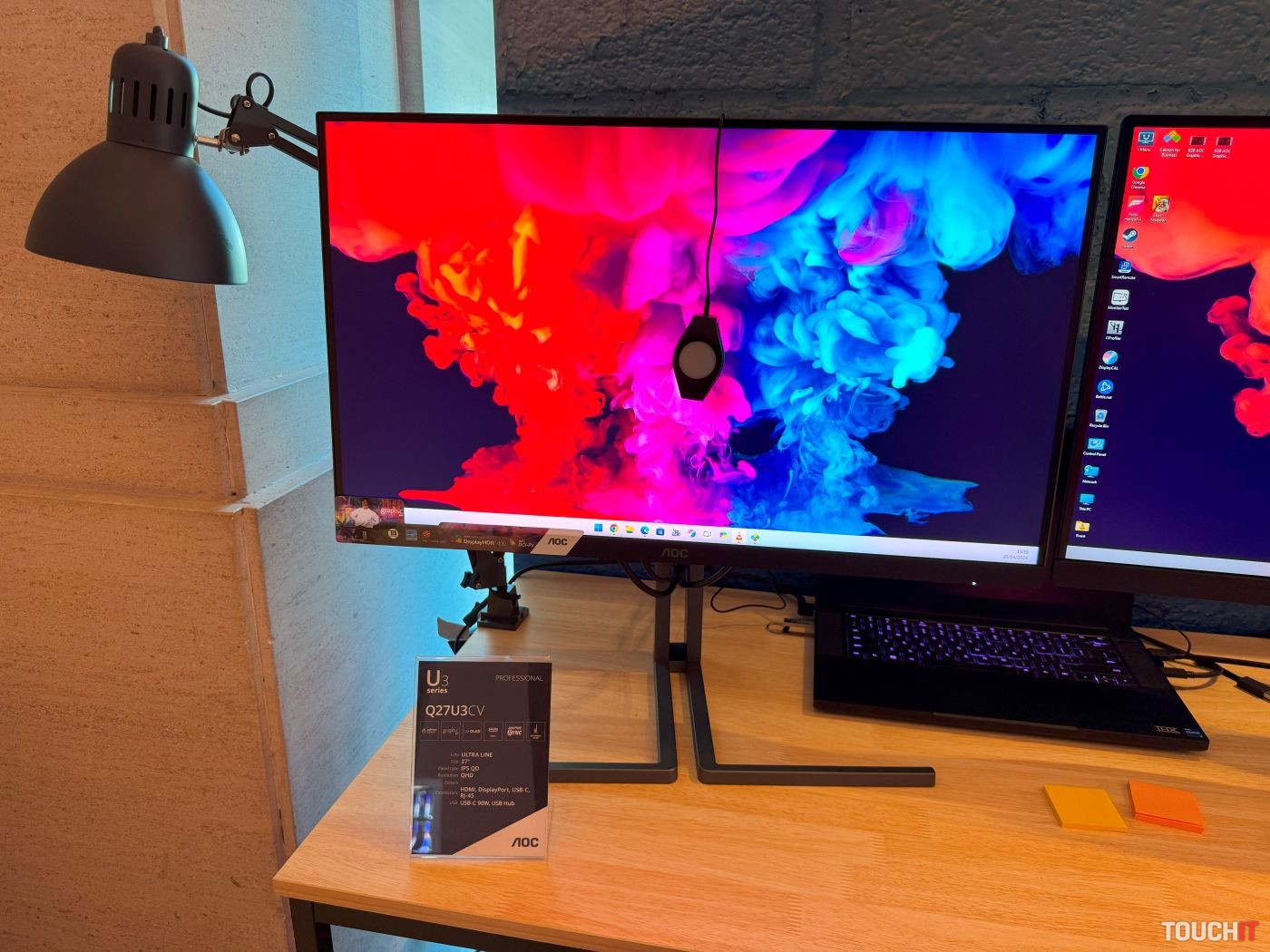 AOC Q27U3CV: 27″ IPS panel s rozlíšením QHD (2560×1440), frekvencia 60/75 Hz, certifikácia VESA DisplayHDR 400. Porty: 1x HDMI 1.4, 1x DisplayPort 1.4 vstup, 1x DisplayPort 1.4 výstup, 1x RJ-45, 2x USB-C (1 up, 1 downstream), 4x USB-A porty. Dva 3 W reproduktory.