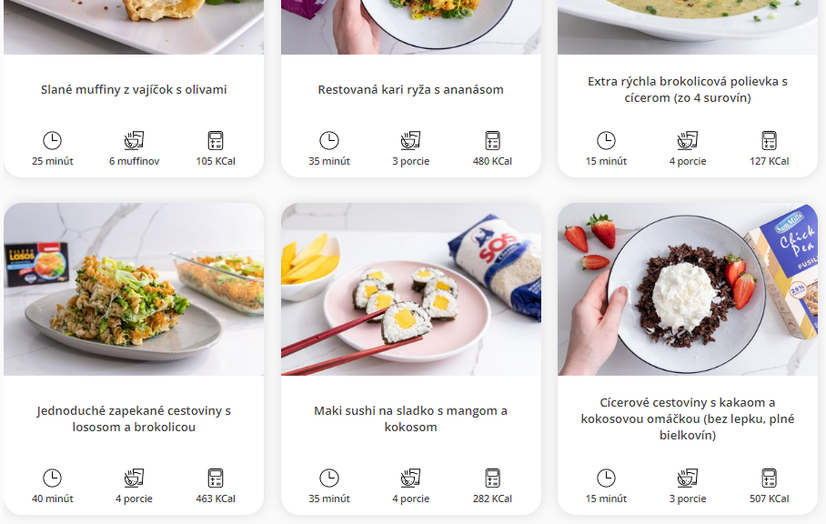 Na webe Apetit nájdete 30 rýchlych receptov na hlavné jedlo. Tu sa nám páčilo hodnotenie z pohľadu náročnosti ako aj odhadovaná doba prípravy. Veľmi pekne spracované návody nájdete aj na webe Lenivá kuchárka. Názov jasne definuje jedlá, ktoré tu nájdete resp. ich čas na prípravu. Odporúčame každému, kto nerád trávi čas prípravou jedál. Okrem hlavných jedál sú tu aj recepty na maškrty.