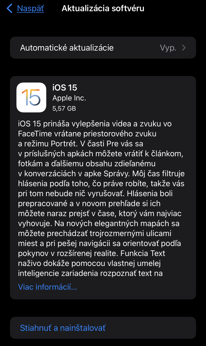 Aktualizácia je už dostupná a my vám ju určite odporúčame, nakoľko iOS 15 prináša viacero užitočných a praktických vylepšení, ako aj úplné novinky. Počas beta testovania sme o viacerých novinkách z praxe informovali a všetko nájdete – TU.