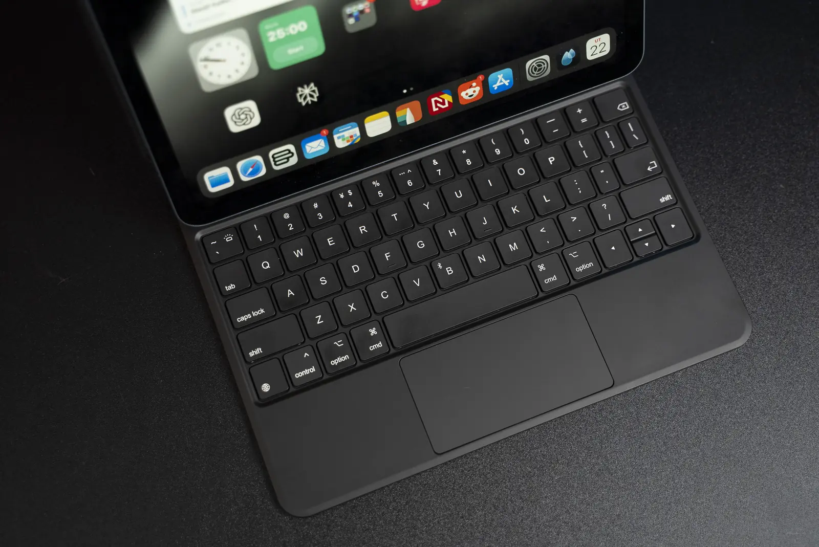 Touchpad reaguje s krátkym oneskorením, avšak podporuje pohybové gestá v systéme iPadOS a zlepšuje produktivitu. Bluetooth pripojenie bolo počas môjho testovania spoľahlivé. Bez problémov funguje aj automatické zapnutie klávesnice pri otvorení obalu, čo zvyšuje pohodlie používateľa.