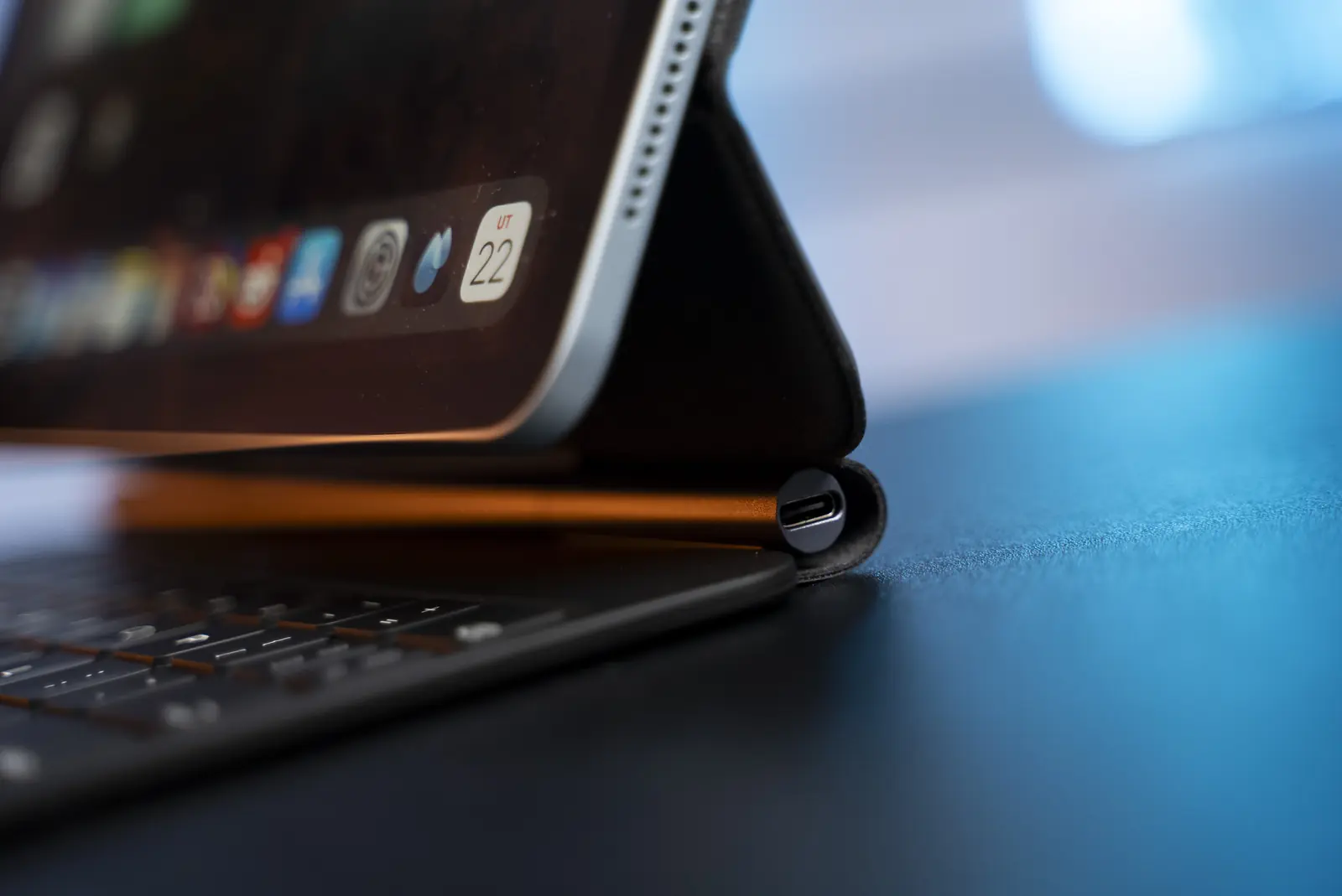 Nabíjanie klávesnice zabezpečuje USB-C port, ktorý sa nachádza v spodnom pánte.