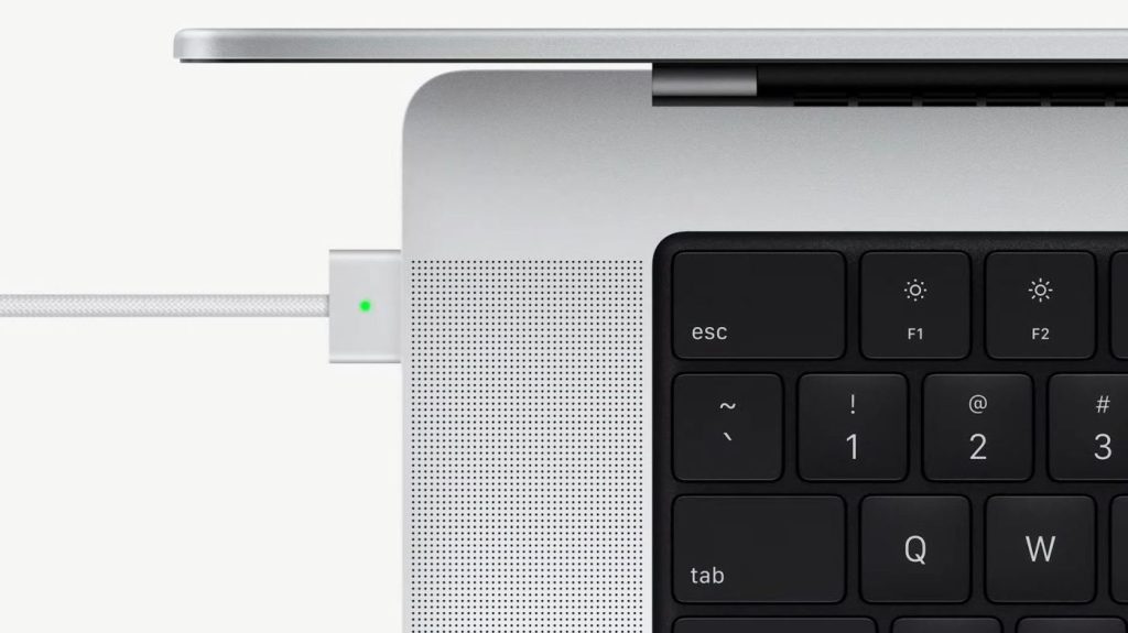 Nové MacBooky Pro podporujú aj rýchle nabíjanie a 50 % kapacity batérie nabijete v priebehu polhodiny. V prípade 14-palcového modelu je rýchle nabíjanie dostupné cez USB-C aj MagSafe, v prípade 16-palcového MacBooku Pro iba cez MagSafe.