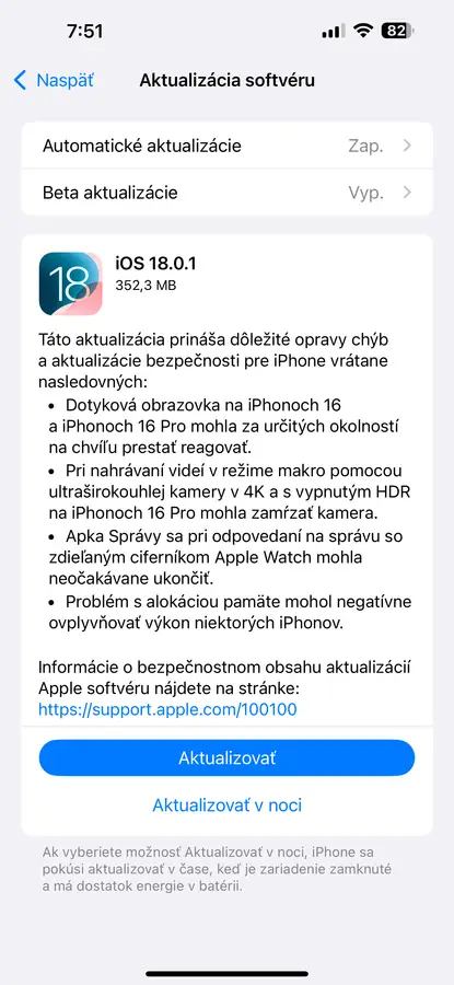 Aktualizácia na iOS 18.0.1 je dostupná na stiahnutie.