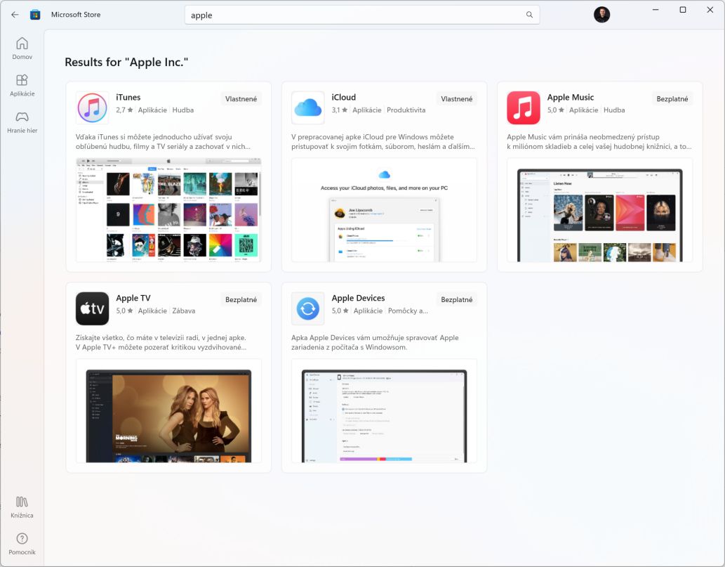 Apple sprístupnil aplikácie Apple Music, Apple TV a Apple Devices pre Windows 10 a Windows 11 vo verzii pre širokú verejnosť. Všetky aplikácie si môžete stiahnuť z obchodu Microsoft Store. Aplikácie boli dostupné od roku 2023 v testovacích verziách.