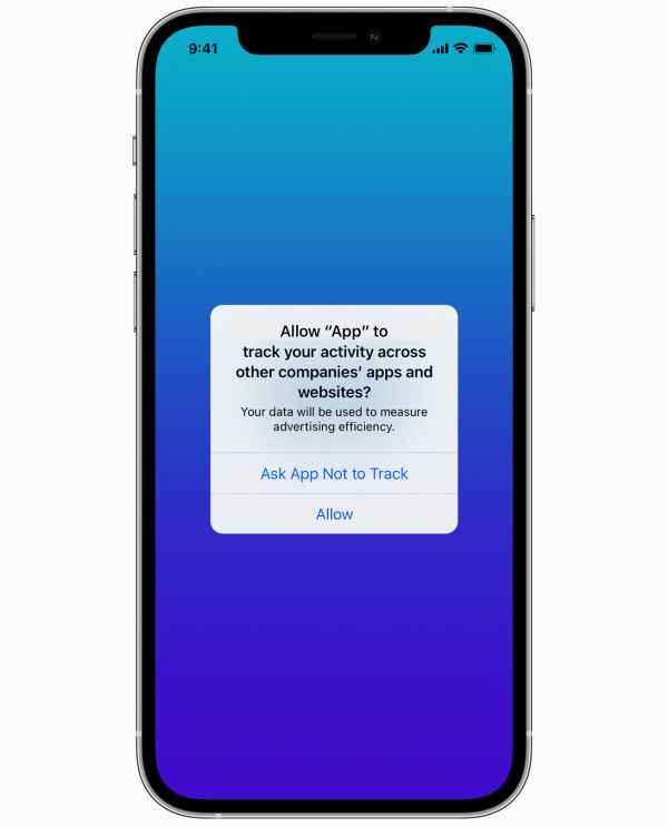iOS 14.5 vás takýmto spôsobom upozorní, ak chce aplikácia sledovať vaše správanie v iných aplikáciách a na webe. Aplikácii to môžete povoliť alebo zakázať. Zdroj: Apple