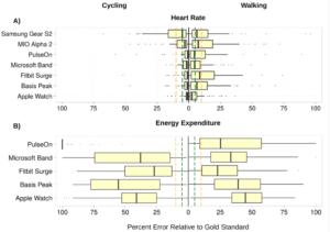 Testovaných bolo 31 žien a 29 mužov v priemernom veku 38 rokov (± 11 rokov), ktorí boli monitorovaní profesionálnymi medicínskymi nástrojmi pri rôznych druhoch fyzickej záťaže (jazda na bicykli, beh a chôdza). Ich cieľom bolo vyhodnocovať hodnoty EKG a spálených kalórií. Výsledky boli následne porovnané s hodnotami smart hodiniek a fitness náramkov. Do testu boli zapojené inteligentné zariadenia od rozličných výrobcov. Sú nimi Apple Watch, Samsung Gear S2, Microsoft Band, Fitbit Surge, Basis Peak, PulseOn a Mio Aplha 2.