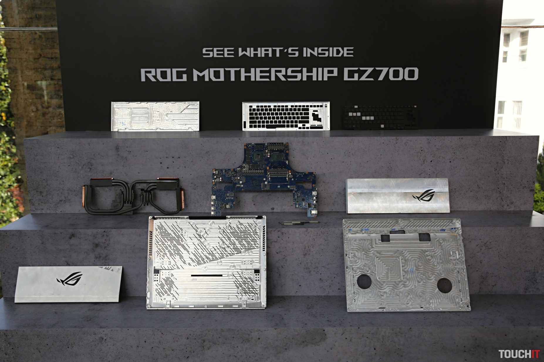 ROG Mothership položíte na stôl, pritom sa automaticky vysunie jeho podstavec. Zástupcov ASUSu sme sa pýtali, ako to majú mechanicky preverené, že toto bude dlhodobo fungovať a dostali sme odpoveď, že toto je riešenie, ktoré bolo úspešne otestované v náročných podmienkach počas naozaj intenzívneho používania. Keďže je Mothership postavený na stole, jeho chladenie funguje úplne inak. Neleží totiž na stole ako tradičné notebooky, ale využíva stojan, vďaka ktorému má chladiaci systém neobmedzený prístup k prieduchu vzduchu na zadnej strane. Klávesnica je odnímateľná a dá sa zložiť. Vtedy má Je možné ju položiť kdekoľvek a pripojiť priamo alebo bezdrôtovo. Odňatie klávesnice odkryje štyri reproduktory, ktoré smerujú priamo na používateľa.