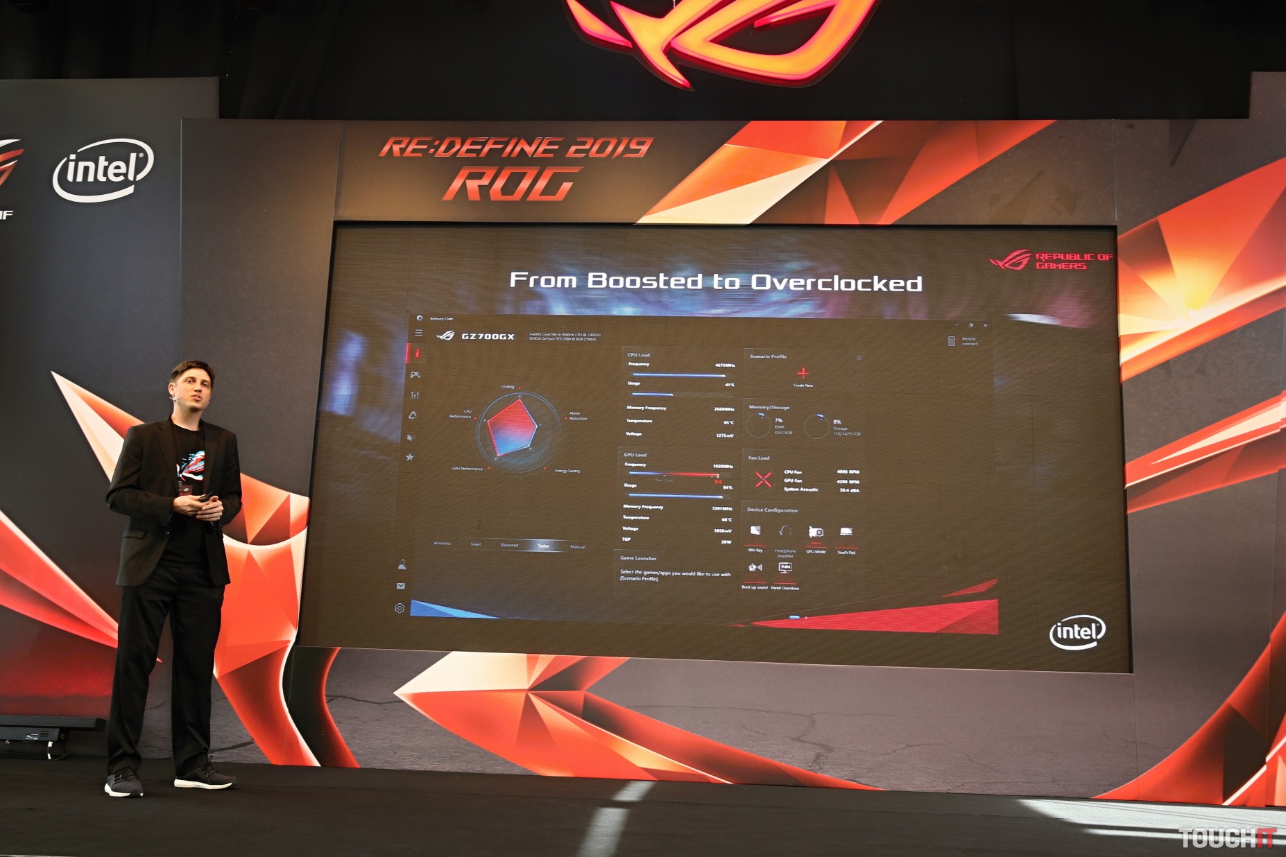Asi najväčším prekvapením bolo zariadenie ROG Keystone. Je to čítačka zabudovaná priamo do notebooku a samotné zariadenie v podobne malého kľúča. KeyStone umožňuje lepšiu personalizáciu notebooku. Zariadenie obsahuje NFC a funguje ako fyzický kláves na zmenu osvetlenia a ďalších nastavení. Takisto umožňuje prístup do utajeného úložiska Shadow Drive, v ktorom sú skryté a tiež zašifrované dôležité súbory. Rozprávali sme sa s tímom, ktorý toto zariadenie navrhol a chceli sme, aby sa pomocou neho dalo aj prihlasovať do Windows namiesto zadávanie hesla, odtlačku prsta alebo rozpoznávanie tváre. Zatiaľ to tak nefunguje, ale špecialisti na tom pracujú – v tomto prípade ide totiž o dohodu s Microsoftom.