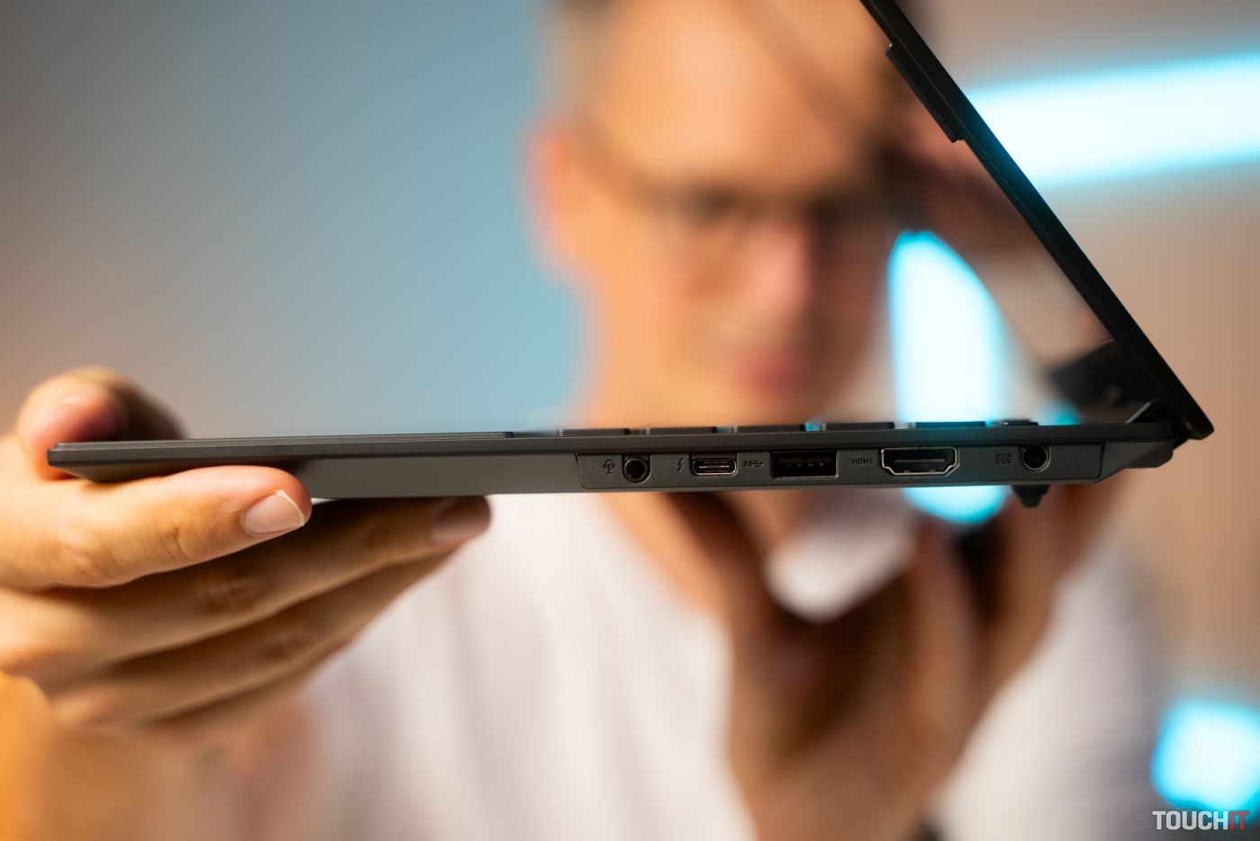 Vivobook S 15 OLED má hmotnosť 1,6 kg a hrúbku 18 mm – v tomto smere nemám čo vytknúť. V poriadku je aj bezdrôtová konektivita (Wi-Fi 6E a Bluetooth 5.3) a portová výbava, ktorá pozostáva z USB-C portu s podporou Thunderbolt 4, dvoch USB-A portov (jeden USB 2.0, druhý USB 3.2), HDMI 1.4 výstupu a 3,5 mm jacku. Vo výbave je tiež samostatný napájací port, čo ma prekvapilo. Na napájanie môžete využiť aj USB-C port. Webkamera s rozlíšením Full HD ponúka fyzickú krytku.
