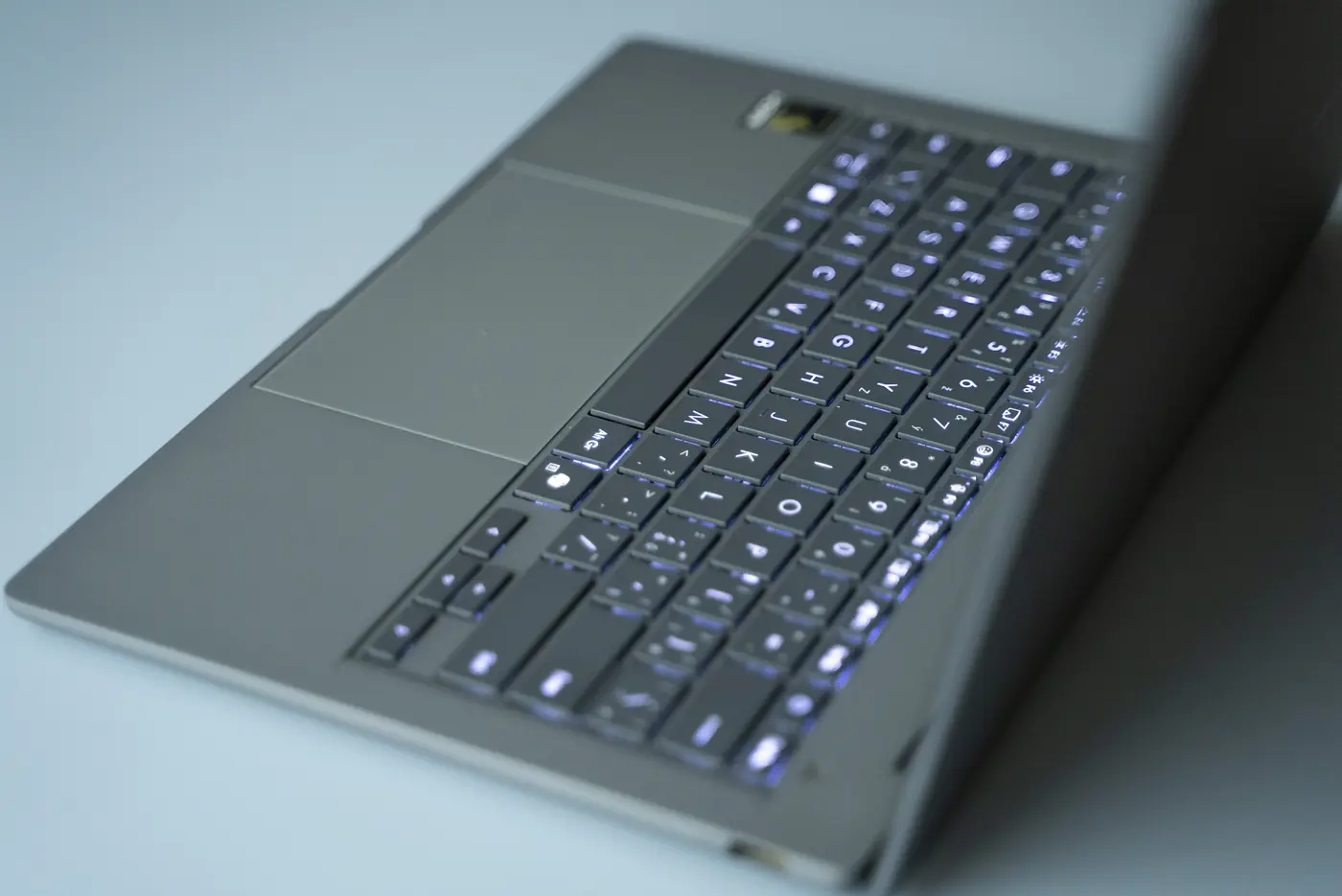 Klávesnica a touchpad Zenbooku A14 sú výborné. Klávesnica je pohodlná, má nízky zdvih. Pracovalo sa mi na nej skvelo, je to jedna z najlepších klávesníc, s ktorými som sa stretol za posledné mesiace. K dispozícii sú tri intenzity podsvietenia. Oceňujem, že napájacie tlačidlo nie je umiestnené v pravom hornom rohu, kde sa nachádza kláves Del, ale naľavo od neho.