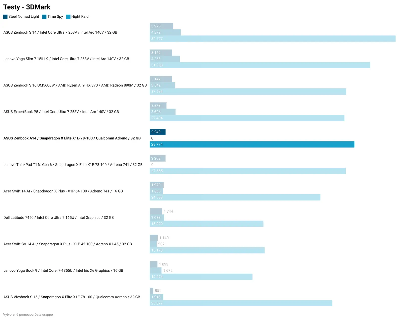 ASUS Zenbook A14: Porovnanie grafického výkonu s viacerými konkurenčnými notebookmi