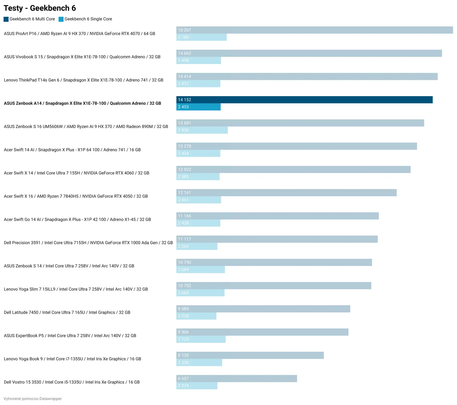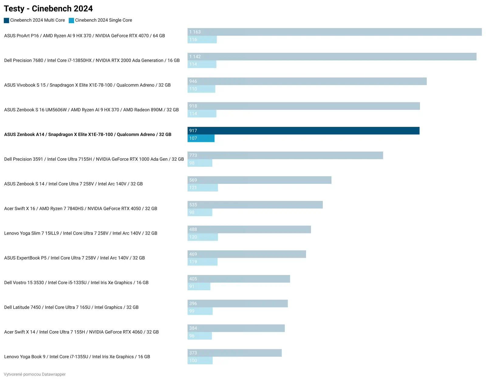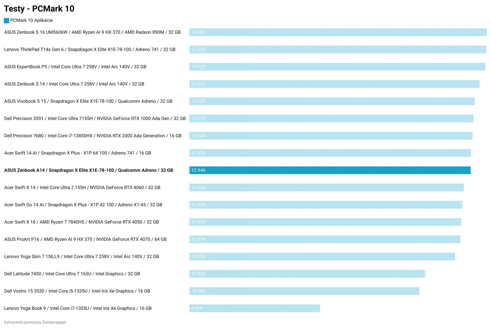 ASUS Zenbook A14: Porovnanie výpočtového výkonu s viacerými konkurenčnými notebookmi