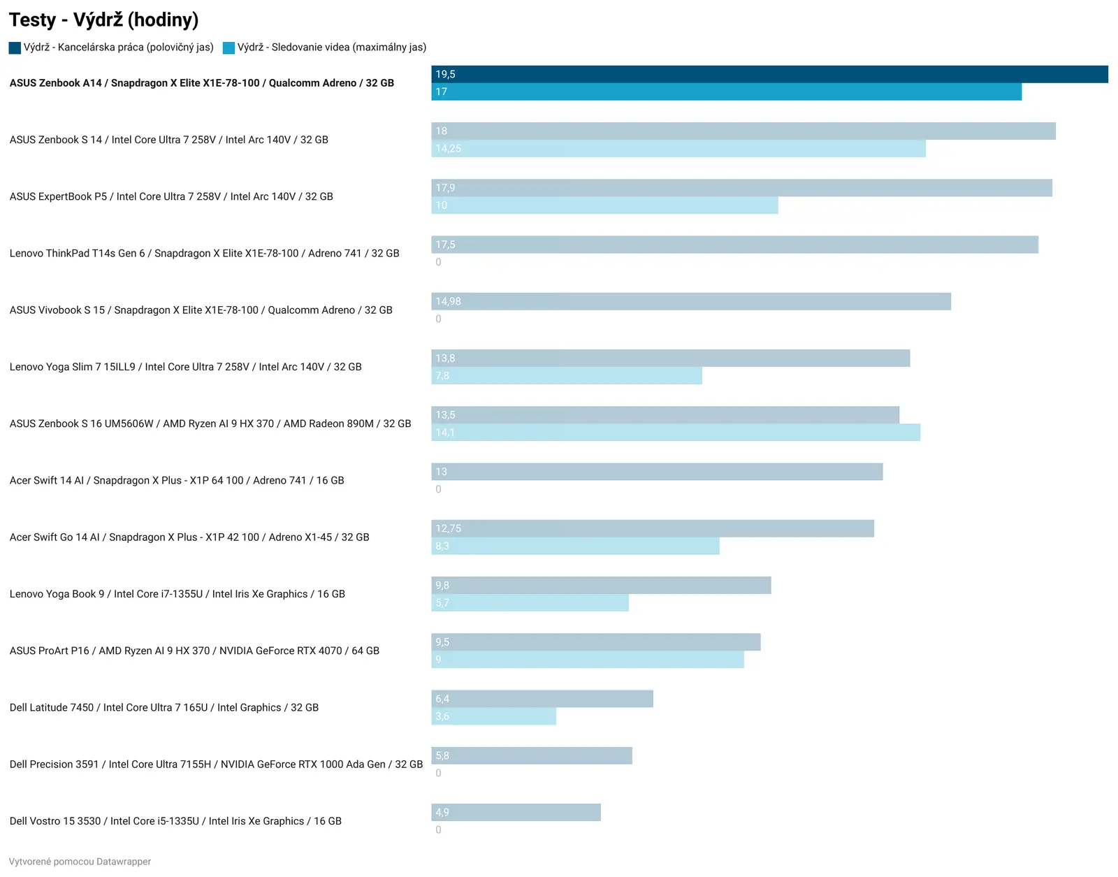 ASUS Zenbook A14: Porovnanie výdrže s viacerými konkurenčnými notebookmi