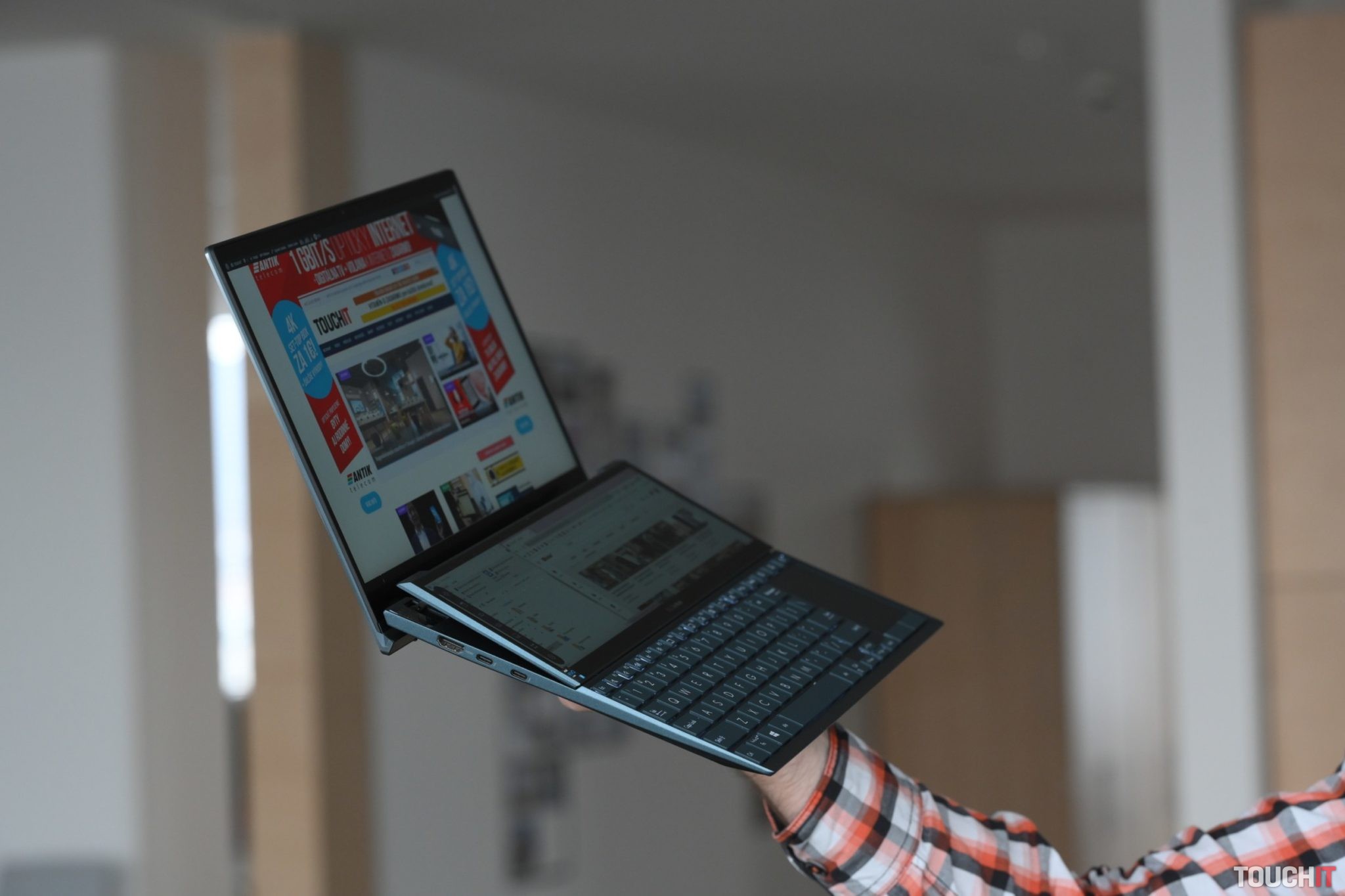 Dva displeje v inovovanom notebooku na kancelársku a kreatívnu činnosť.