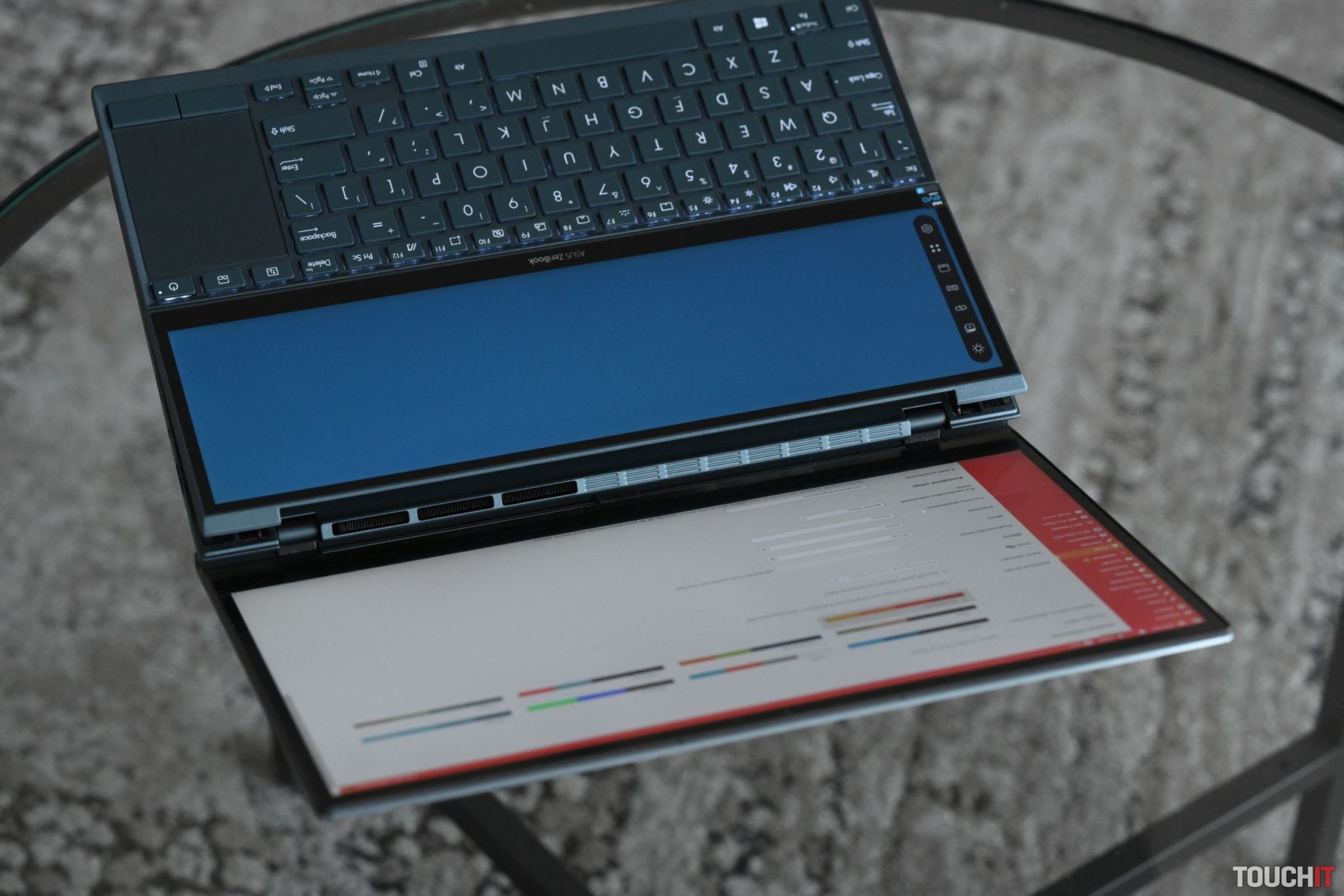 Je to zaujímavosť, ktorá skutočne dobre vyzerá. Výrobca sa postaral o to, aby prezentácia dvoch displejov pôsobila veľkolepo. Systém sa dá dobre použiť, treba si ale na niektoré veci zvyknúť. Poďme ale postupne, notebook je rozhodne užitočným doplnkom a u nás v redakcii bol na test vo verzii s integrovanou grafikou Intel Xe. Ja by som v tomto prípade kupoval verziu s grafickou kartou NVIDIA GeForce MX450. Keď už dva displeje a multimediálne zameranie, tak aspoň lepšia grafická karta. V mojej konfigurácii som získal úsporný režim pri práci, ktorí robí z notebooku vhodný nástroj aj na prácu bez externého zdroja napájania. Tým, že tu je 11. generácia CPU od Intelu, máte dostatočný výkon aj na multimediálne zaťaženie. Toto nie je prvý a ani jediný notebook Duo, s ktorým sa dá pri ASUSe stretnúť. V minulosti sme testovali model ZenBook Pro Duo vhodný pre kreatívcov a tiež herne ladený ROG Zephyrus Duo 15 GX550.