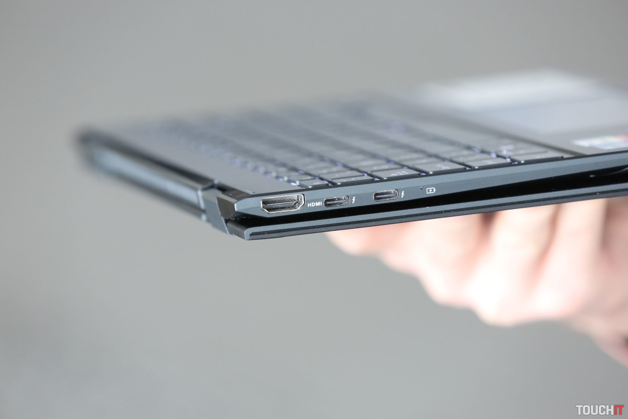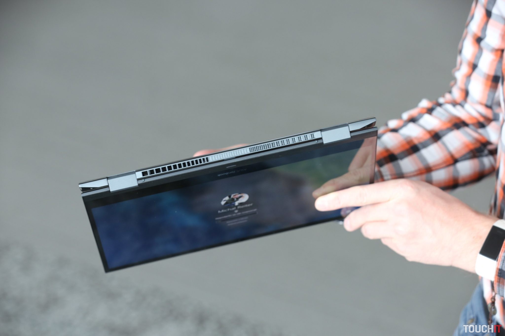 Je plný detailov, ktoré si všimnite postupne, ako budete notebook používať. V tomto smere oceníte spôsob uchytenia displeja systémom ErgoLift, ktorý nadvihne základňu. Klávesnica je naklonená smerom k vám tým, že sa nadvihne zadná časť základne. Pomáha to aj lepšiemu vetraniu pri vyššej záťaži. Na rozdiel od klasických notebookov je ErgoLift v rozsahu 360°, čo je vzhľadom na koncept notebooku pochopiteľné.