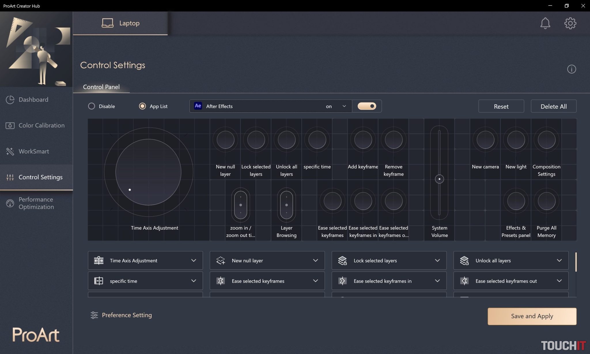 V podporovaných aplikáciách máte možnosť využiť druhý monitor na ovládacie prvky a hlavný displej poslúži na zobrazenie obsahu. Je na vás, čo si naň umiestnite. Vo svojej podstate je to stále druhý monitor. V nástroji ASUS ProArt Creator Hub si definujete výkon systému ale aj aplikácie, ktoré chcete spúšťať jedným kliknutím.