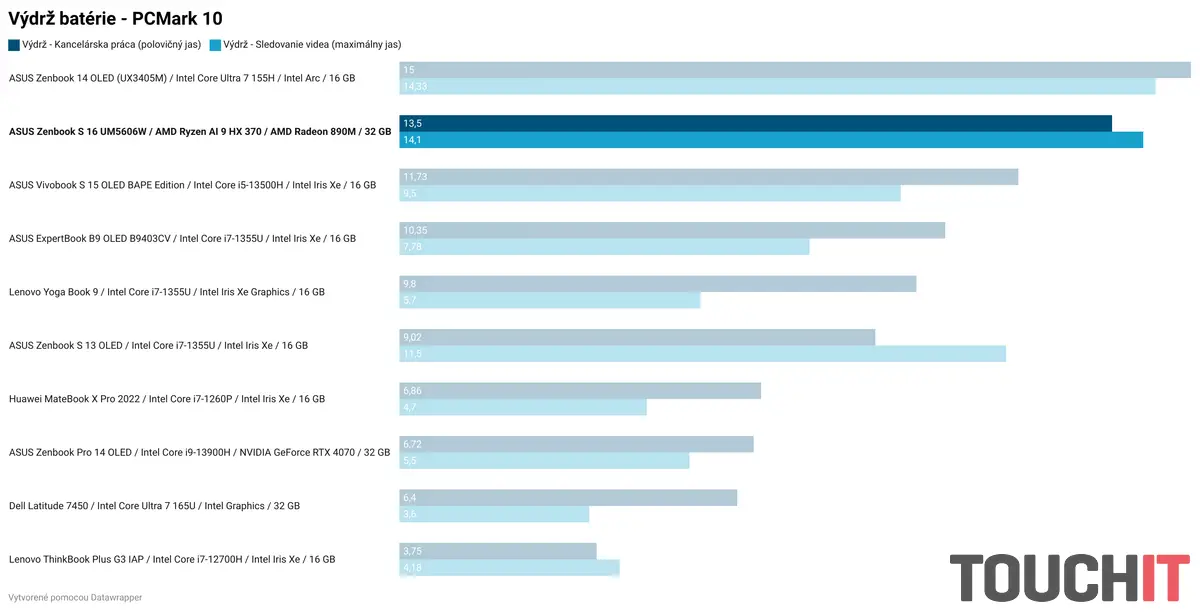 Podobnú výdrž som dosiahol aj v rámci testu kancelárskej práce v PCMark 10. V rámci bežného používania som sa pohyboval na úrovni 8 až 10 hodín, podľa toho, čo som práve s notebookom robil. V tomto smere teda môže iba chváliť. Som však zvedavý, čo prinesú nové procesory Intel Core Ultra 2. generácie. Prvé notebooky s nimi by mali prísť na trh už na jeseň tohto roka.