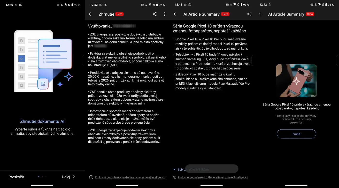 ASUS zakomponoval do smartfónu aj funkciu na sumarizáciu webových stránok a dokumentov v telefóne. Táto funkcia dokáže fungovať v cloudovom režime (podporuje slovenčinu) a v režime lokálneho LLM modelu Llama 3 8B (nepodporuje slovenčinu). Z hľadiska práce s textom v slovenčine má zmysel iba cloudový režim. Je to však funkcia, ktorú bez problémov nahradíte v iných telefónoch cez Gemini alebo iné nástroje.
