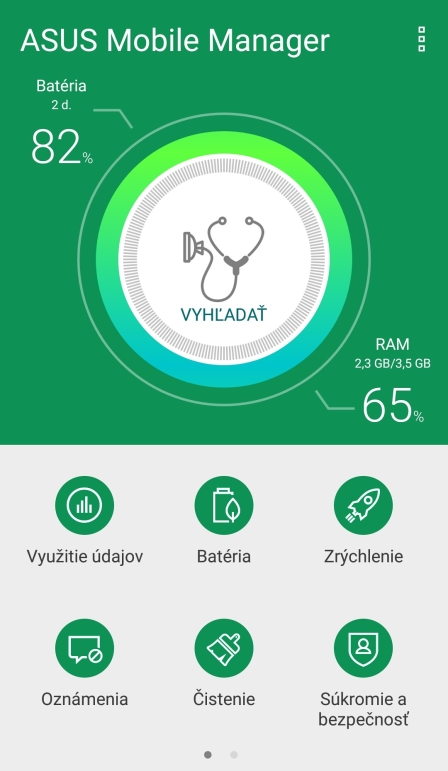 Zen UI 3.0 patrí k rozhraniam, ktoré doslova prešpikujú rozhranie telefónu. Spočiatku vás rozhranie mierne zahltí svojimi možnosťami. Zároveň však ide o tak prepracovaný launcher, že si jeho možnosti prispôsobia aj najväčší priaznivci „modovania“ telefónu. Na domovskej obrazovke si zvolíte rozloženie mriežky medzi vzdušnejším priestorom alebo s potrebou zmestiť viac ikon. Vyberiete si predvolený vyhľadávač alebo vlastné témy. Tu sme ocenili prepracovanosť tém, no veľa z nich je aj platených. Máte možnosť využiť tapety, celé témy na zmenu grafiky systému alebo len ikony. Všetko je na vás a s telefónom sa určite vyhráte do sýtosti. Veľmi sa nám páčila možnosť voľby medzi štýlom použitia len hlavných obrazoviek alebo klasického menu aplikácií Androidu. Stále tu funguje rozšírená previazanosť medzi jednotlivými aplikáciami od výrobcu. Ľahko tak vytvoríte schôdzku, skontrolujete nové emaily, skopírujete informácie z nich do inej aplikácie atď. Hráči využijú možnosť nahrávania priebehu hrania, všetci používatelia zase správu telefónu. Funkcia sa volá Herný džin a podporuje nahrávanie aj samotného používateľa. Okienko s vaším portrétom tváre sa dá pokojne vypnúť. Priamo z hornej lišty domovskej obrazovky aktivujete eliminovanie modrého svetla, vhodné napríklad na večerné čítanie kníh. Nechýba optimalizácia využitia pamäte a šetrenia batérie a iné vlastnosti cez aplikáciu ASUS Mobile Manager. Stále tu funguje aj automatické triedenie aplikácií do priečinkov podľa ich typu. Hry sa teda budú dávať do iného priečinka ako nástroje na komunikáciu. Komu tento spôsob automatického triedenia nevyhovuje, môže ho vypnúť. Nie vždy vítame prepchaté prostredie nadstavby operačného systému, no v tomto prípade sa nám rozhranie páčilo. 4 GB RAM pomáhajú k tomu, aby bol telefón celkovo svižný a plynulo sa dal používať, hoci nemá ten úplne najsilnejší výpočtový výkon.