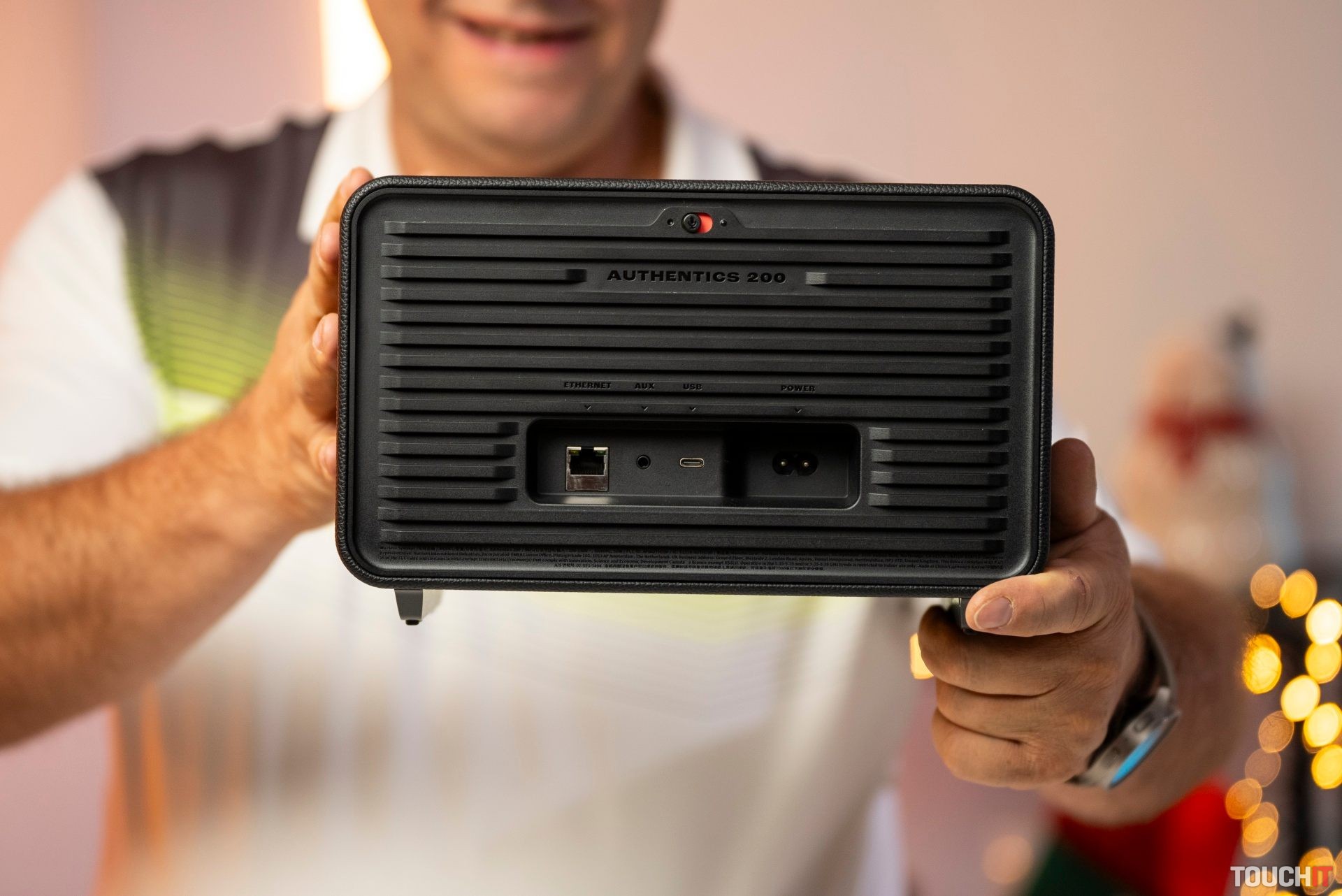 Z moderných technológií je tu Bluetooth 5.3, dvojpásmová Wi-Fi, Chromecast ale aj AirPlay. Na zadnej je konektor RJ-45 pre Ethernet, USB-C na nabíjanie externých zariadení a 3,5 mm jack na externý káblový vstup zvuku. Authentics 200 je možné ovládať hlasovo vďaka obom integrovaným asistentom Alexa aj Google Assistant.