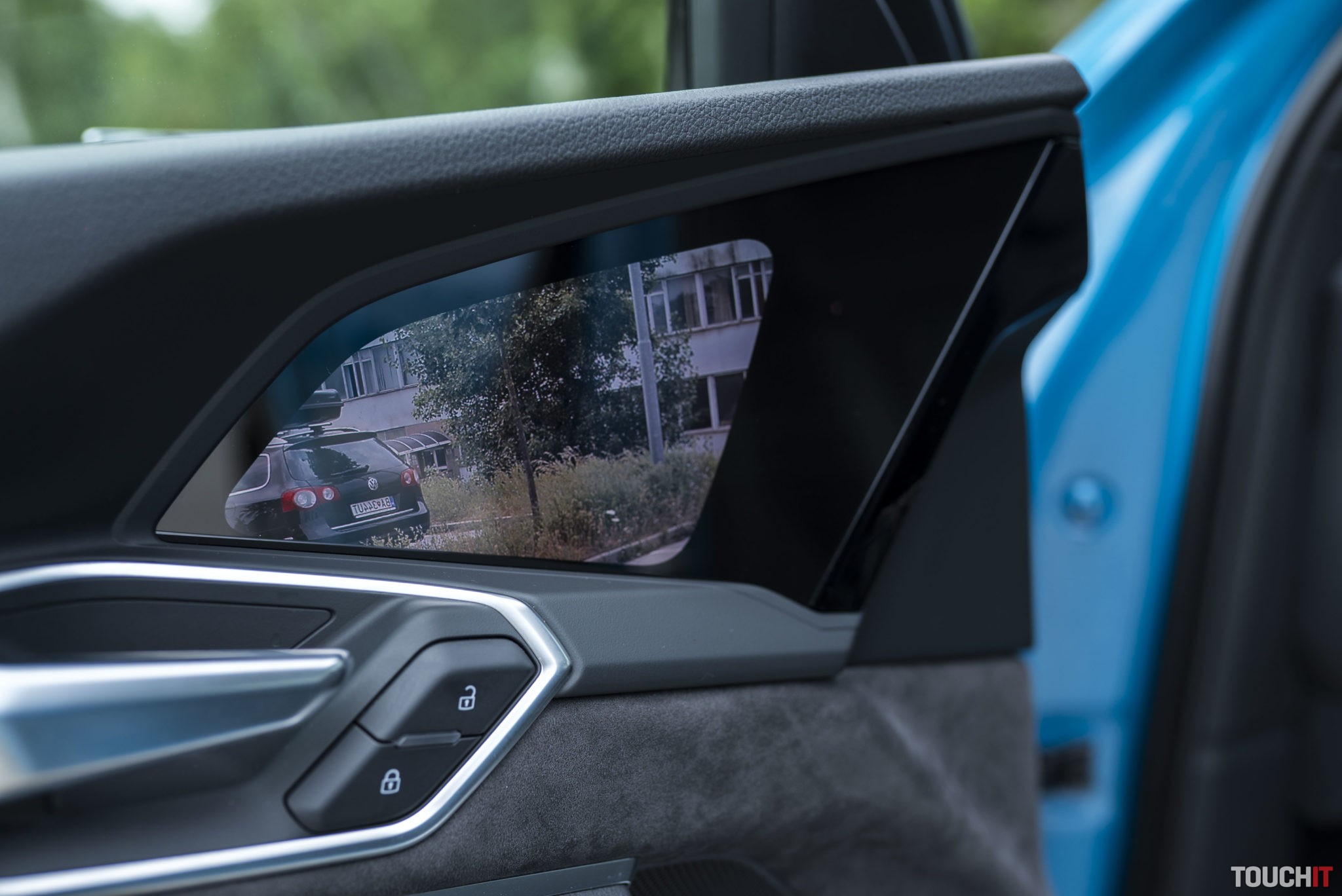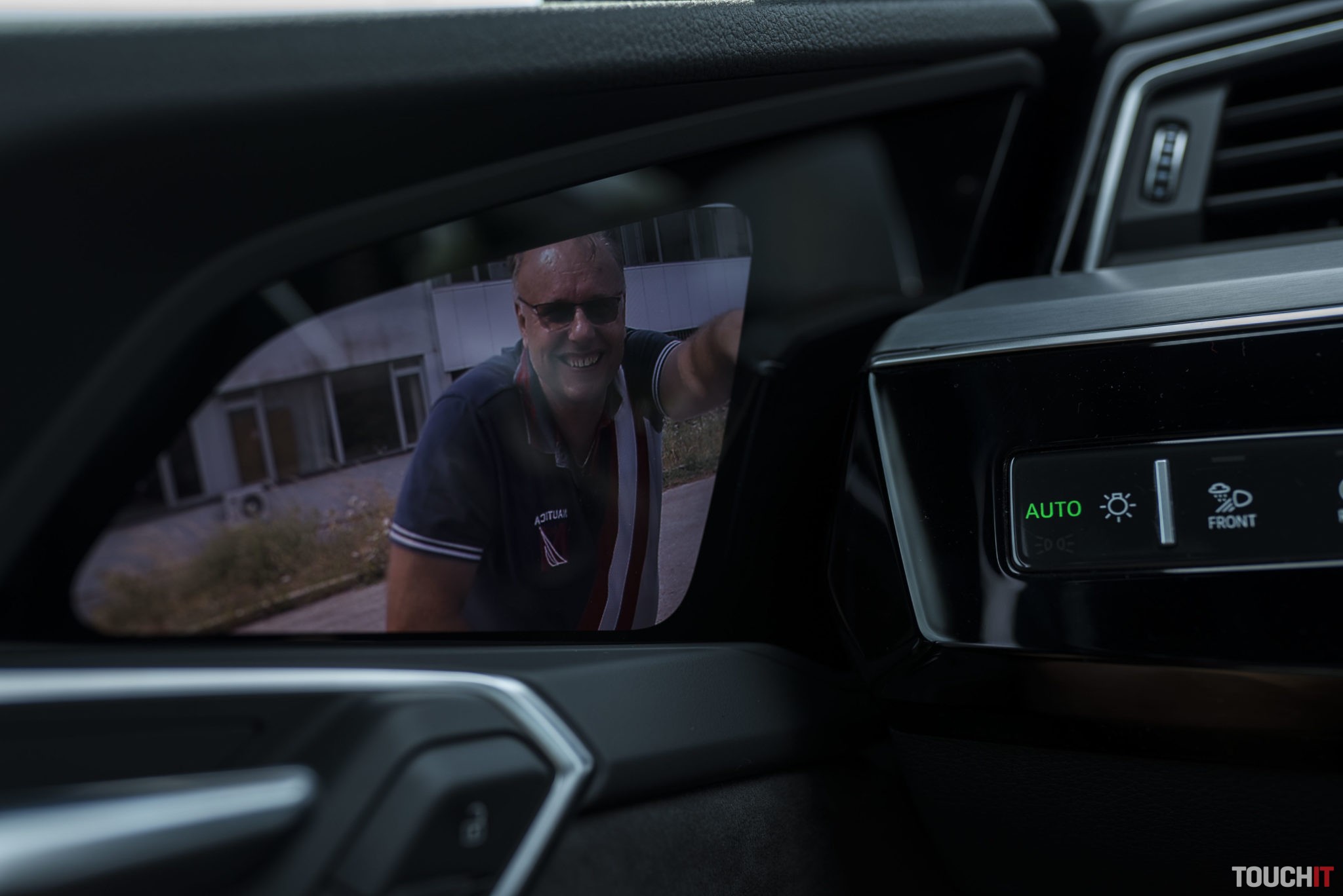 Prvé, čo si všimnete hneď po nasadnutí do tohto auta sú spätné zrkadlá. Totiž, nie sú tam. Sú nahradené kamerami a displejmi. Tak je to možno až príliš moderné a asi treba na to čas, ale jazdiť s tým na prvý krát je ako za trest. Máte totiž dlhoročný zvyk pozerať sa do spätných zrkadiel práve tam, kde obyčajne sú a tu zrazu nevidíte nič. Na to, aby ste zistili situáciu za vami, musíte sa pozrieť na displeje, ktoré máte zabudované v oboch predných dverách. Sú dotykové a dotykom sa nastavuje uhol kamery.