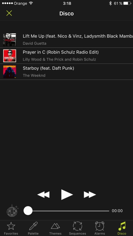 Na ovládanie žiaroviek môžete okrem Pebble ovládača použiť aj smartfón alebo tablet. Podporované OS sú Android a iOS. Bezplatná aplikácia AWOX Smart Control ponúka dobrú funkcionalitu. Aktívne AWOX smart žiarovky (viacero druhov) vyhľadá automaticky, pričom ich môžete ihneď ovládať a konfigurovať. V aplikácii žiarovky zapínate, vypínate alebo vytvárate skupiny z viacerých zariadení, ktoré ovládate súčasne. Sú tu možnosti zmeny farebnej palety podľa predstáv, obľúbené farby, jas, rôzne farebné témy, viacero režimov cirkus (výmena farieb po sebe) alebo režim hudba. Vtedy slúži aplikácia ako hudobný prehrávač (aj na pozadí) a žiarovky sledujú hudbu, pričom menia jas a farbu. Páči sa nám možnosť časovaného zapnutia a vypnutia žiaroviek. V aplikácii sa konfiguruje aj ovládač pebble. Jednotlivé žiarovky, ktoré má súčasne ovládať, sa pridávajú práve tu. Samostatne ovláda len jednu spárovanú žiarovku. Ďalšou možnosťou je zakázať ovládaču jednotlivé gestá, ak by vám nevyhovovali.