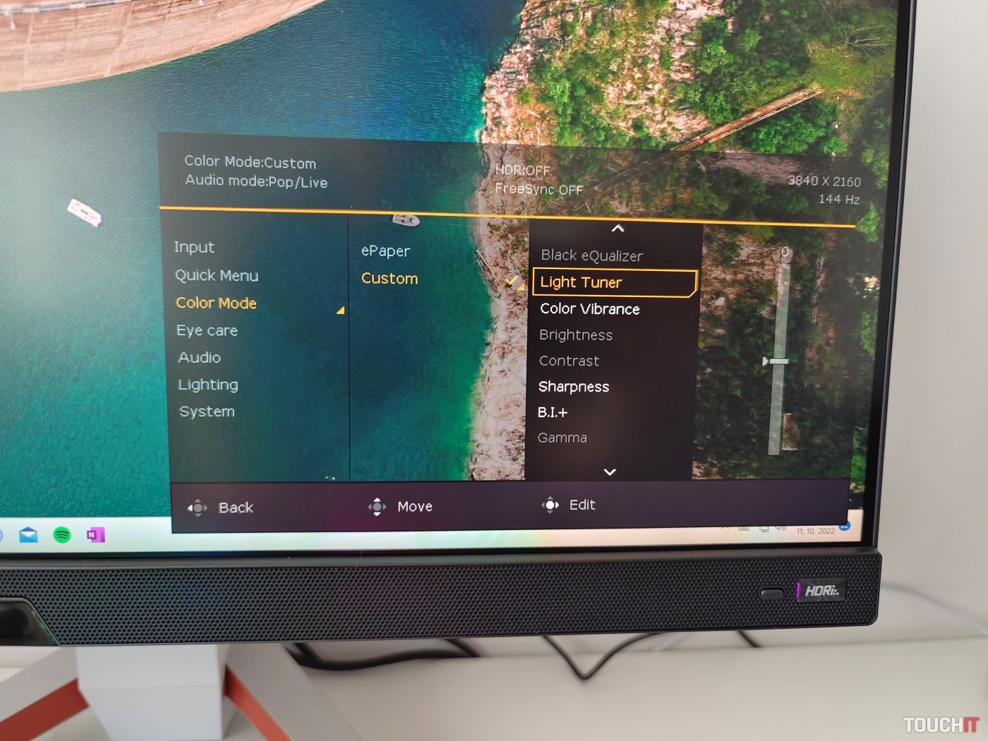 Samostatnou kapitolou je funkcia B.I.+, ktorá využíva zabudovaný svetelný/farebný senzor, aby automaticky upravila jas monitora, ale aj podanie farieb a optimalizovala zážitok zo zobrazenia HDR. Táto funkcia nie je k dispozícii v prípade všetkých režimov zobrazenia a jeho citlivosť si môžete prispôsobiť. Je to užitočné v prípade, že máte na stole klávesnicu s podsvietením, ktorá môže čiastočne zmiasť senzor s vysokým nastavením citlivosti.