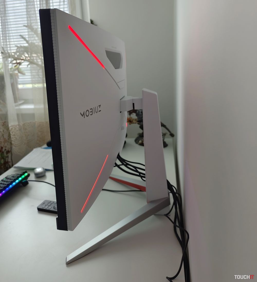 Pridanou hodnotou, pre niektorých používateľov, bude zadné podsvietenie monitora. Zadná strana obsahuje štyri LED pásy, ktoré naplno vyniknú, keď si v izbe zhasnete. K dispozícii je viacero nastavení podsvietenia, ktoré si môžete prispôsobiť. Prípadne si môžete svetelné efekty vypnúť.